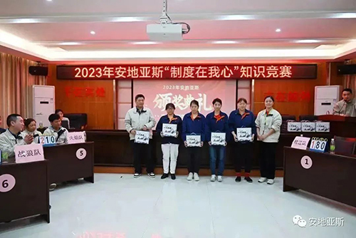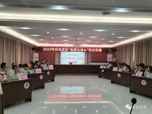 陽春三月、風和日麗。為推動公司制度建設的整體規劃、鞏固、提升全體員工的綜合素質,以賽促學、以學促干,形成公司自主學習的良好氛圍。經公司行政人事中心精心策劃,2023年3月10日下午2點,在經開區黨群活動中心隆重舉行了2023年安地亞斯第一屆“制度在我心”知識競賽。此次競賽內容涵蓋企業文化、行政制度、產品知識、安全知識、品質知識、操作過程等全方面內容。經過各部門嚴格選拔,共有9支隊伍45人參賽。